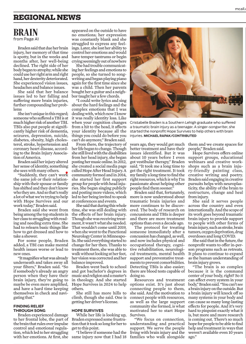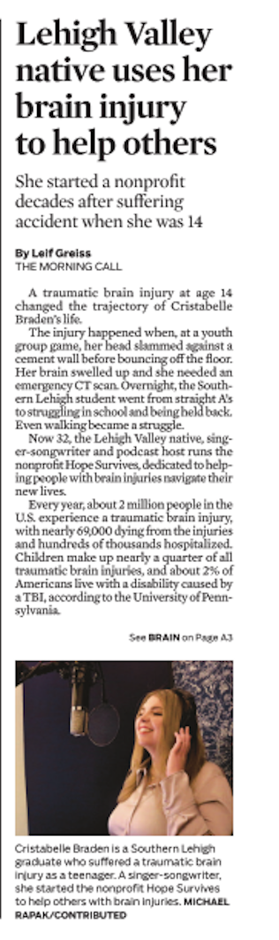 "Cristabelle Braden moves forward after Brain Injury - Recent LVC grad to pursue music and Head After Head Injury organization full time" CLICK HERE TO READ THE FULL ARTICLE